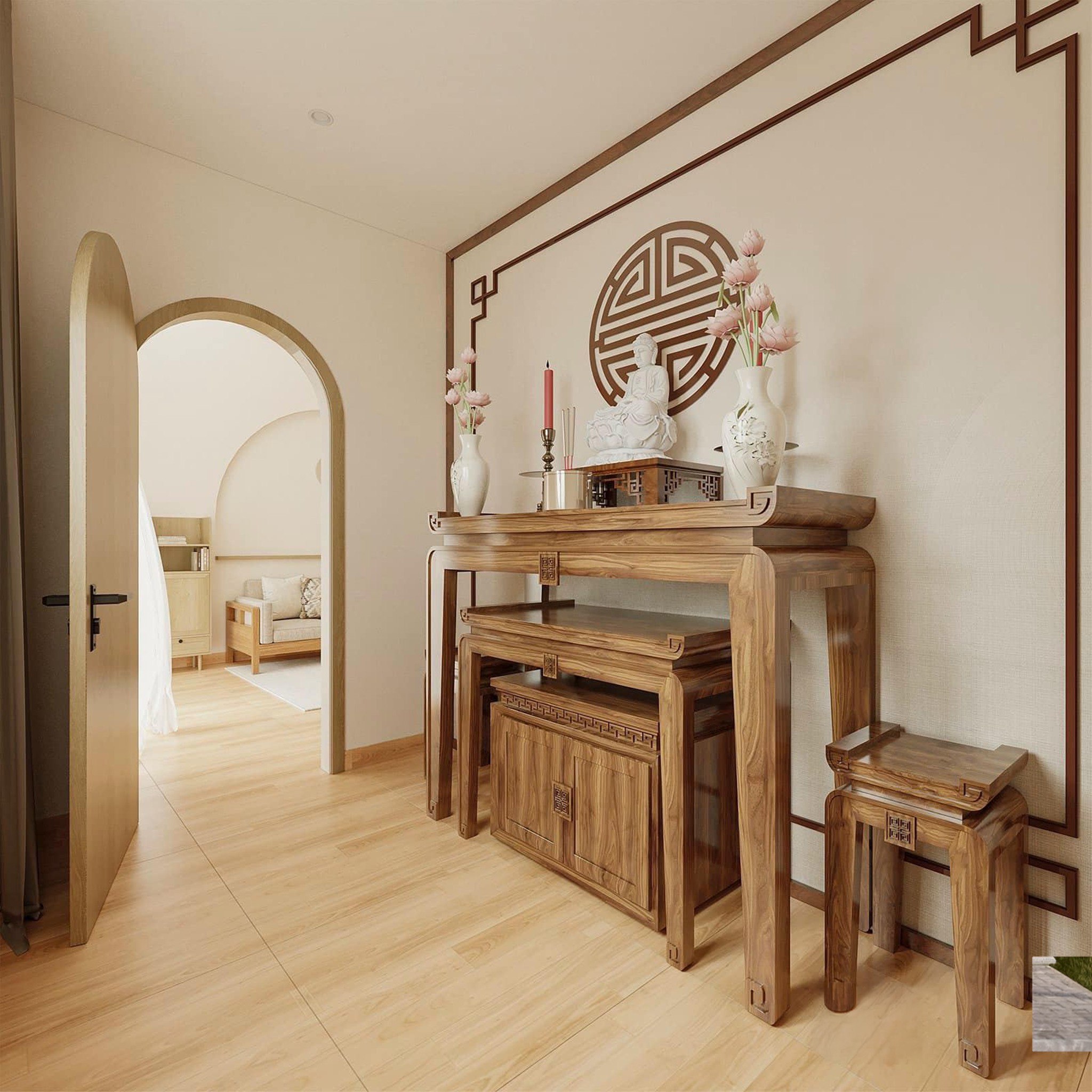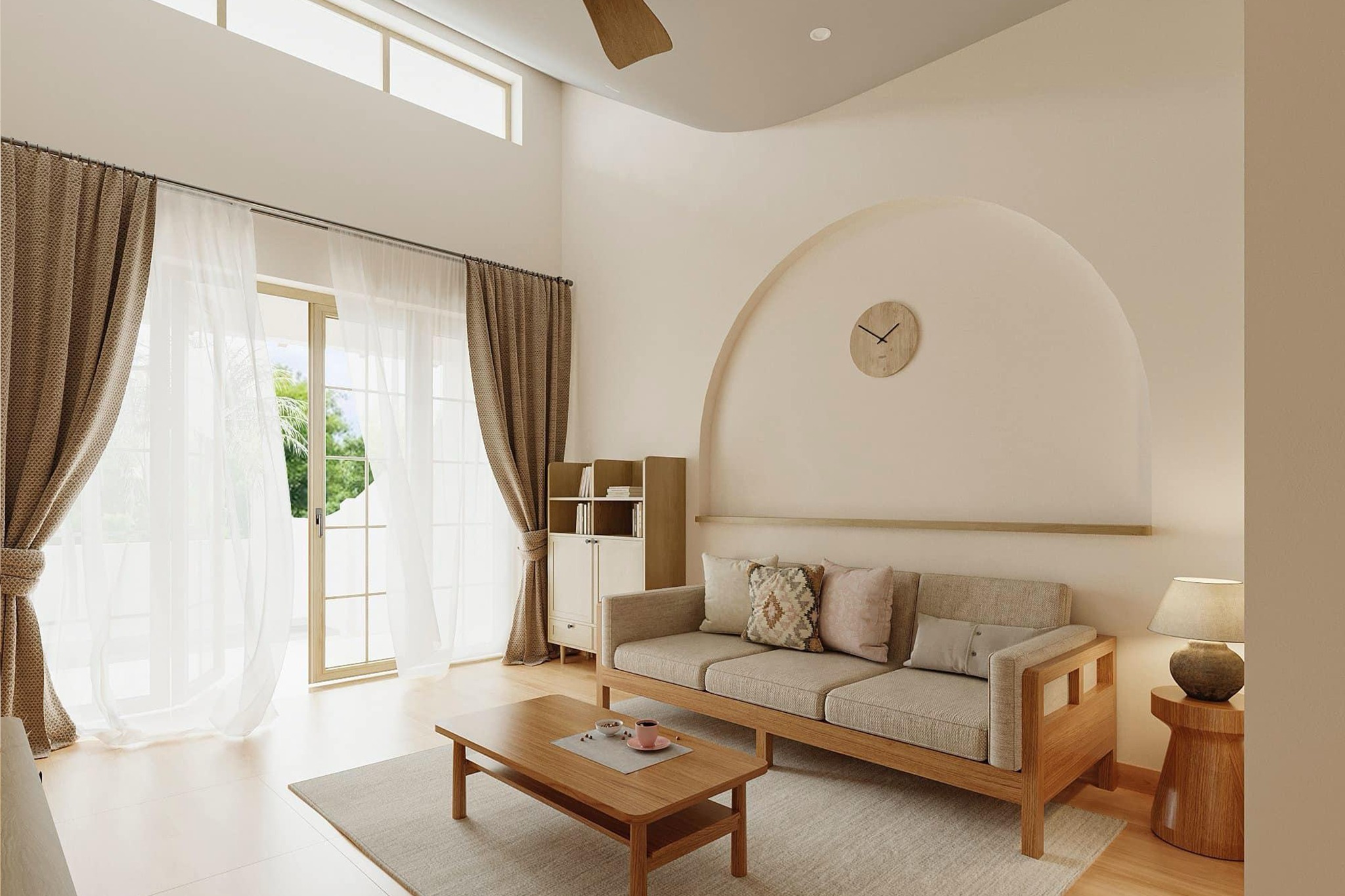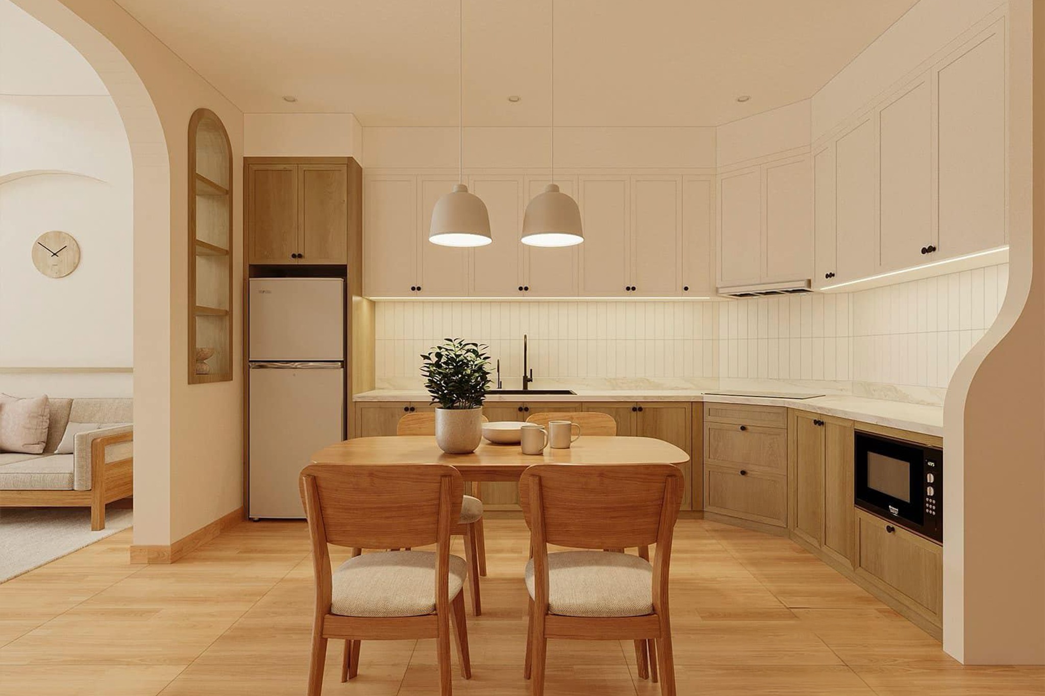 Không gian căn hộ Zen Soha Mini sử dụng gam màu trung tính nhẹ nhàng, kết hợp hài hòa cùng vật liệu mộc như gỗ tự nhiên, vải thô cao cấp và ánh sáng vàng ấm. Sự lựa chọn này tạo nên một bầu không khí lãng mạn, gần gũi và thư thái, giúp cảm xúc của hai người luôn được nuôi dưỡng trong sự mềm mại và cân bằng.